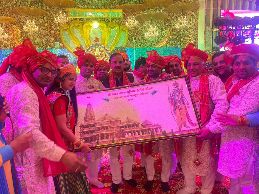 Noida News : श्री श्याम सेवक परिवार ने फाल्गुन महोत्सव में सांसद को भेंट की श्रीराम मंदिर का मार्बल चित्र